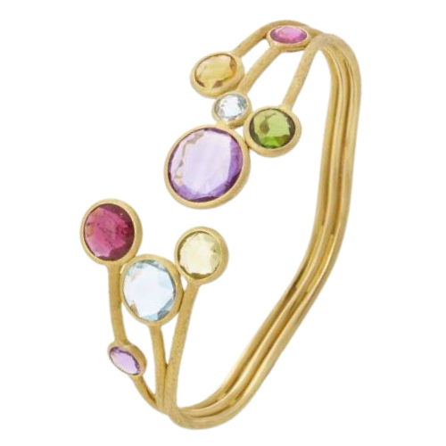 Inspiriert von der rosafarbenen Stadt der Edelsteinschleifer, der sie ihren Namen verdankt, entführt uns die Jaipur Collection von Marco Bicego® unweigerlich in ferne Atmosphären und Landschaften. Sorgfältig ausgewählte prachtvolle mehrfarbige Edelsteine werden durch die charakteristische Einfassung aus Gold, die der Form des Steins nachempfunden und von unseren Handwerkern mit der traditionellen Millerighe-Sticheltechnik von Hand graviert wurde, noch wertvoller.